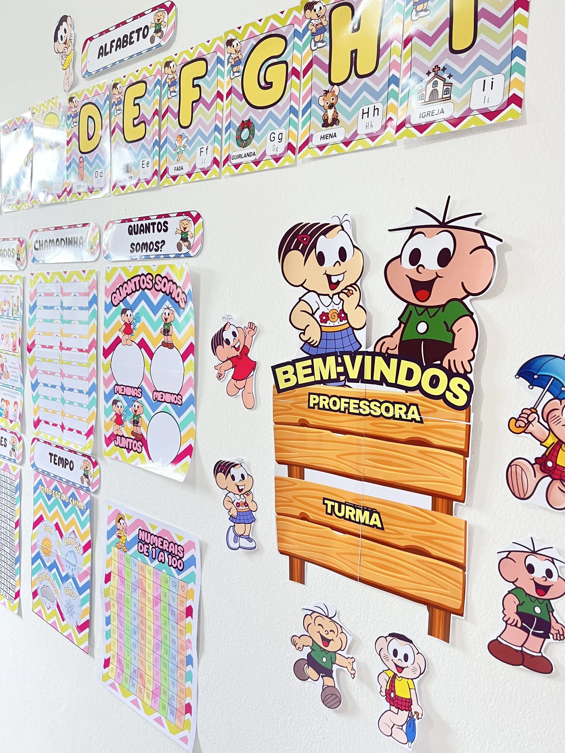 Painel – espaço central para expor recados, avisos e elementos do tema Turma da Mônica.