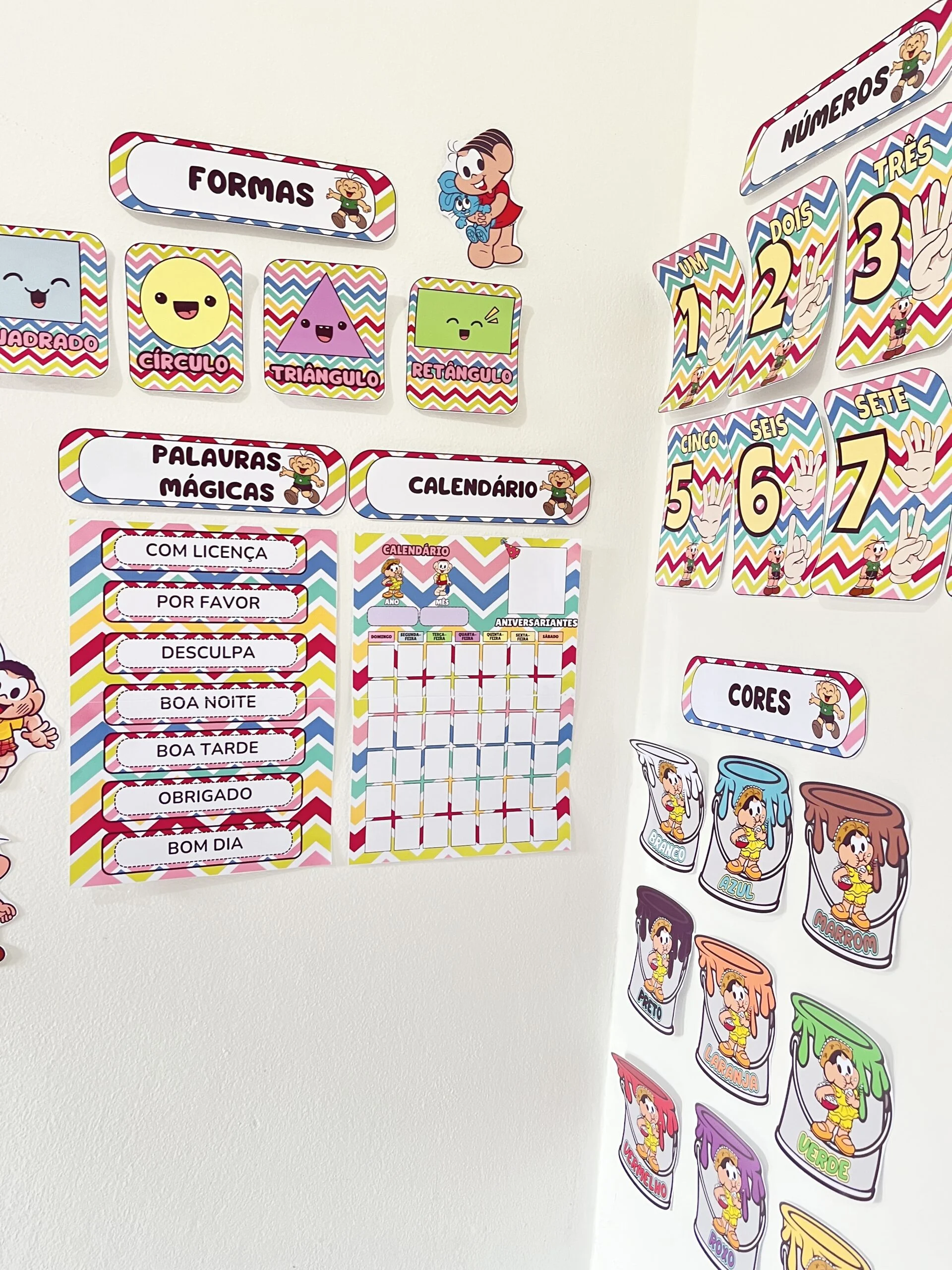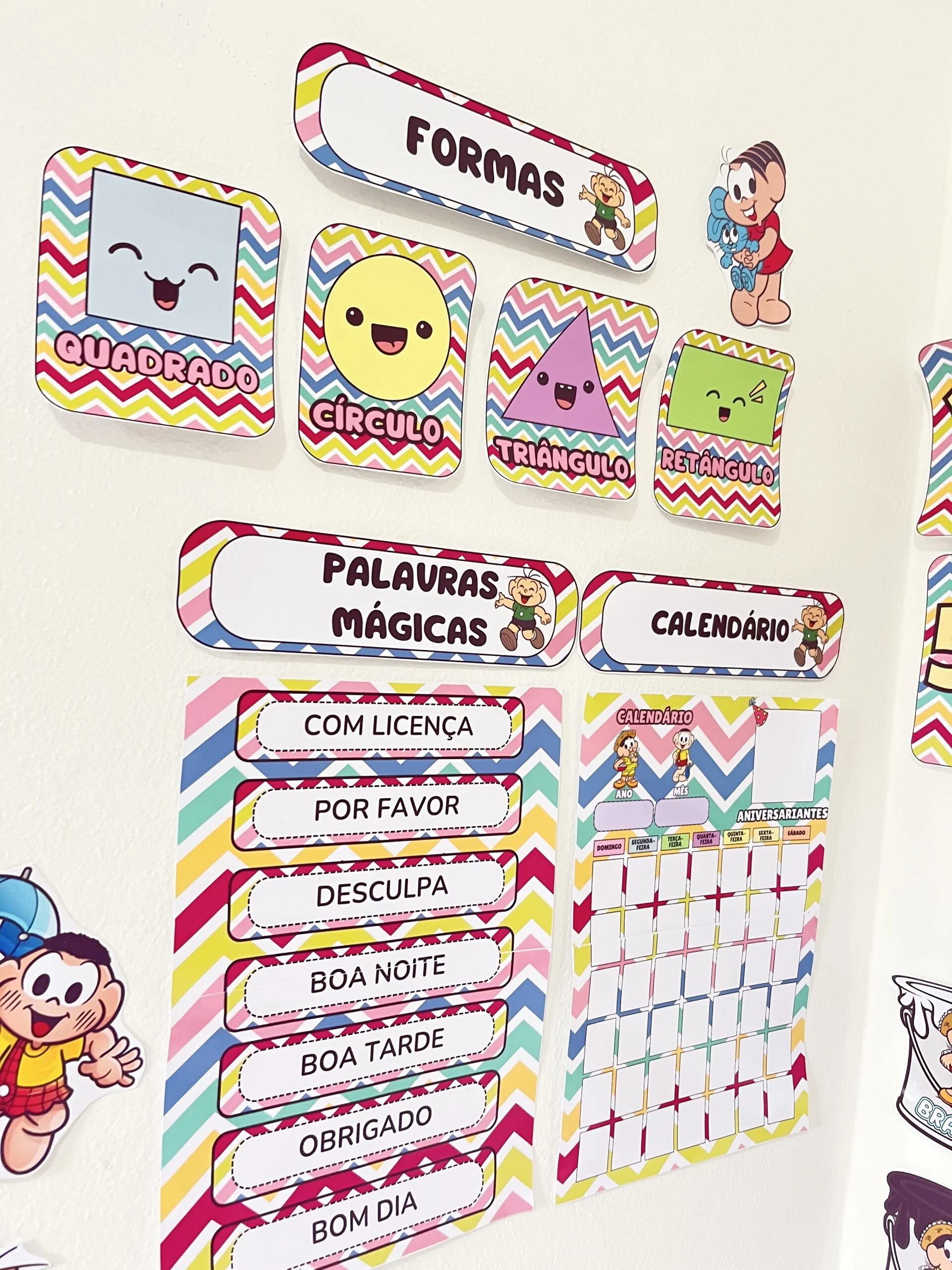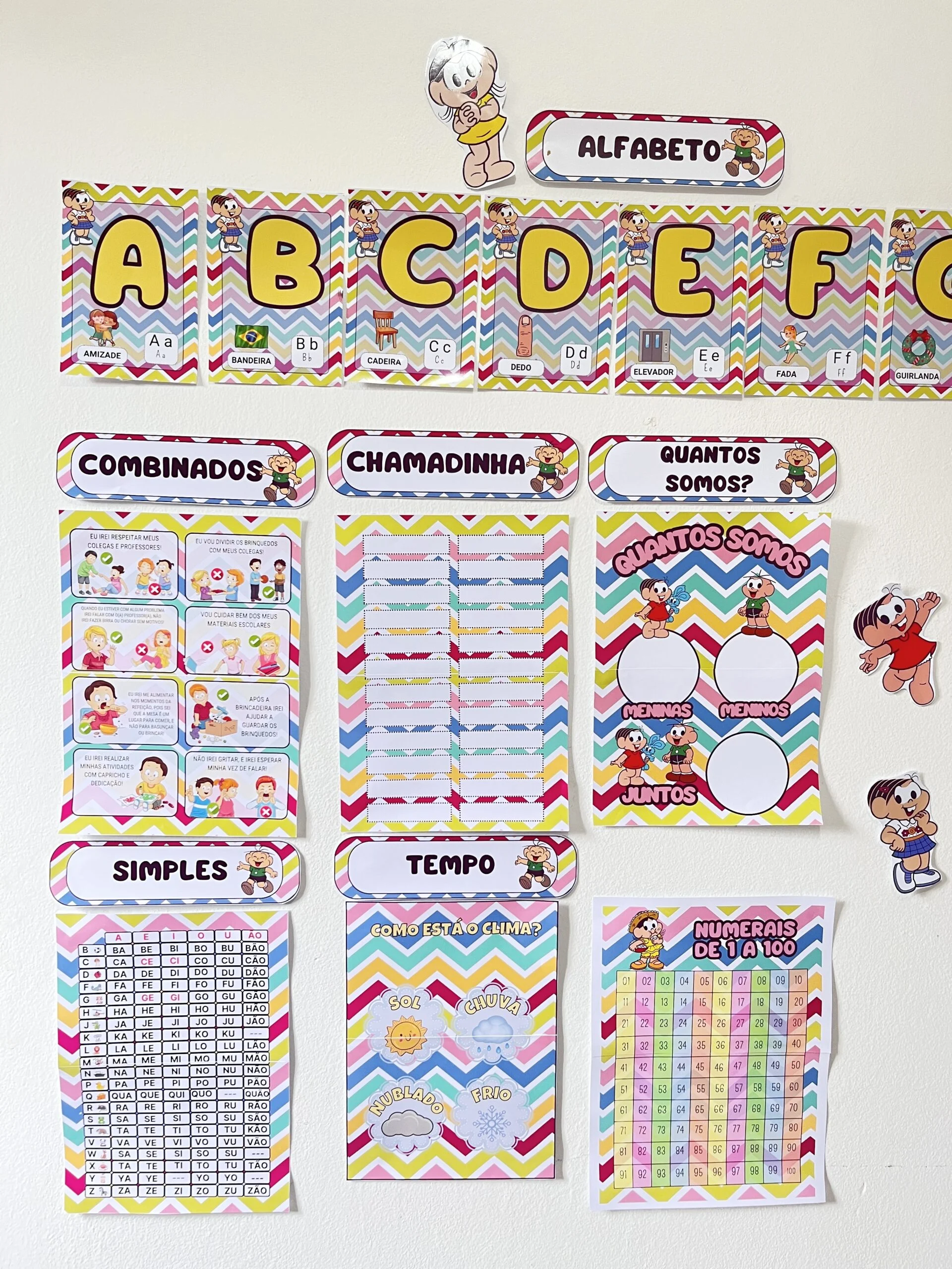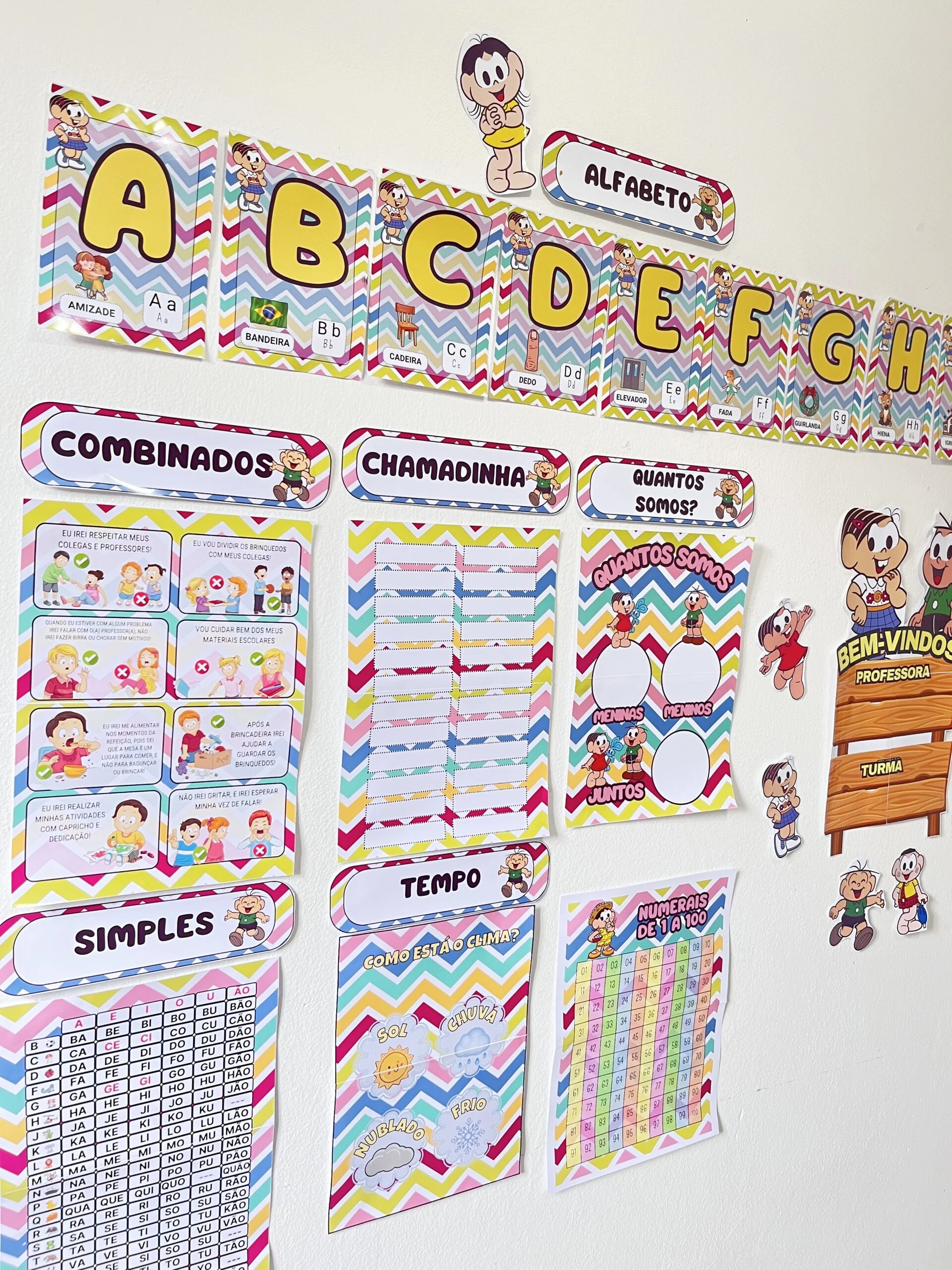 O Kit Sala Tema Turma da Mônica deixa a rotina mais clara, visual e envolvente para as crianças. Com personagens que elas reconhecem e gostam, o ambiente fica mais convidativo para participar, aprender e se sentir parte do grupo.