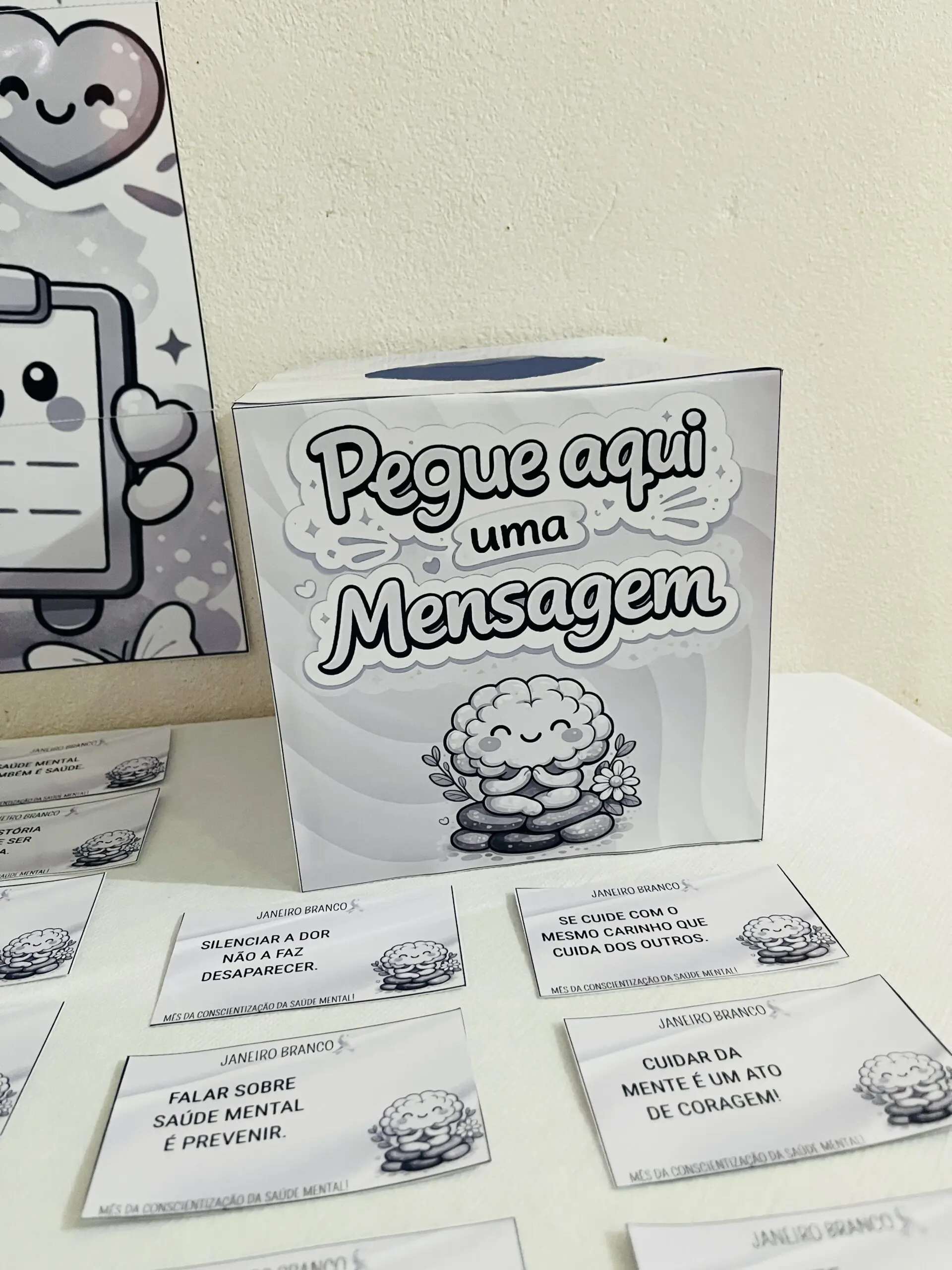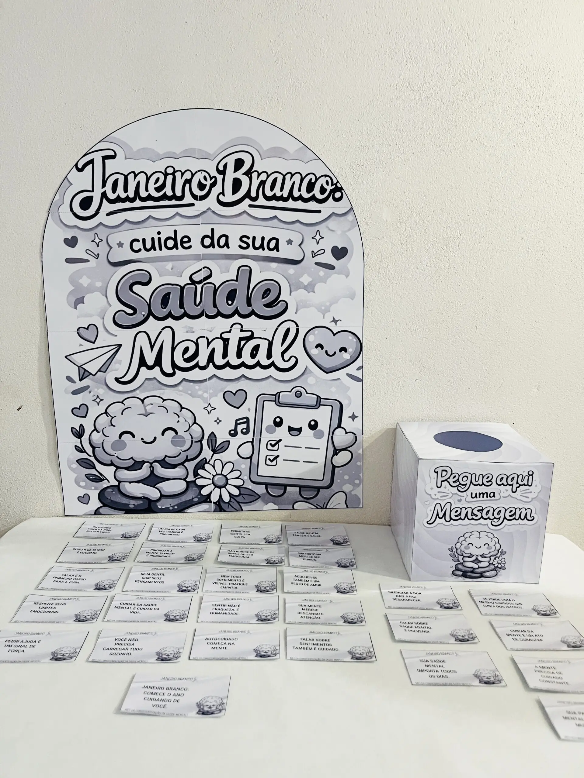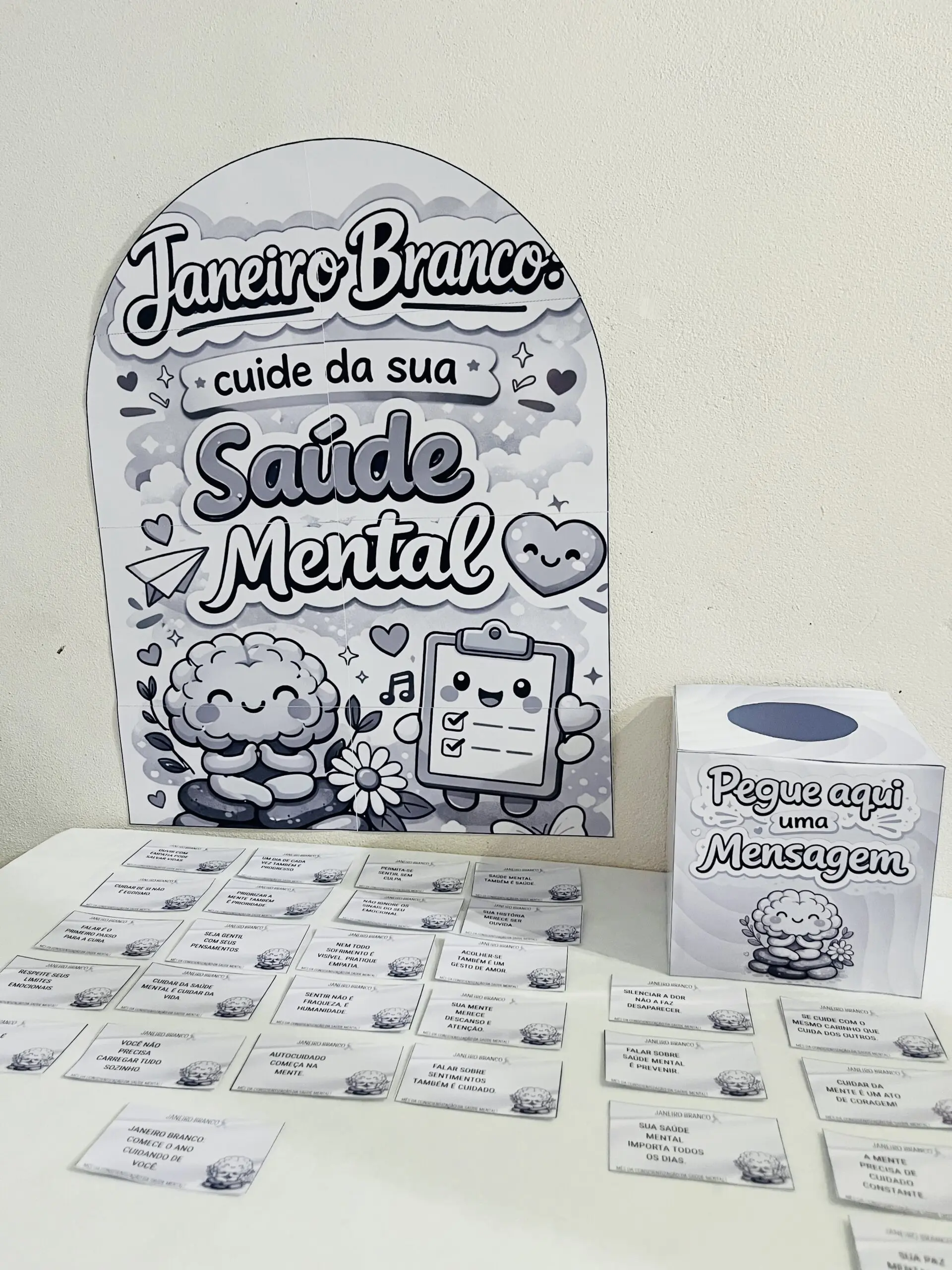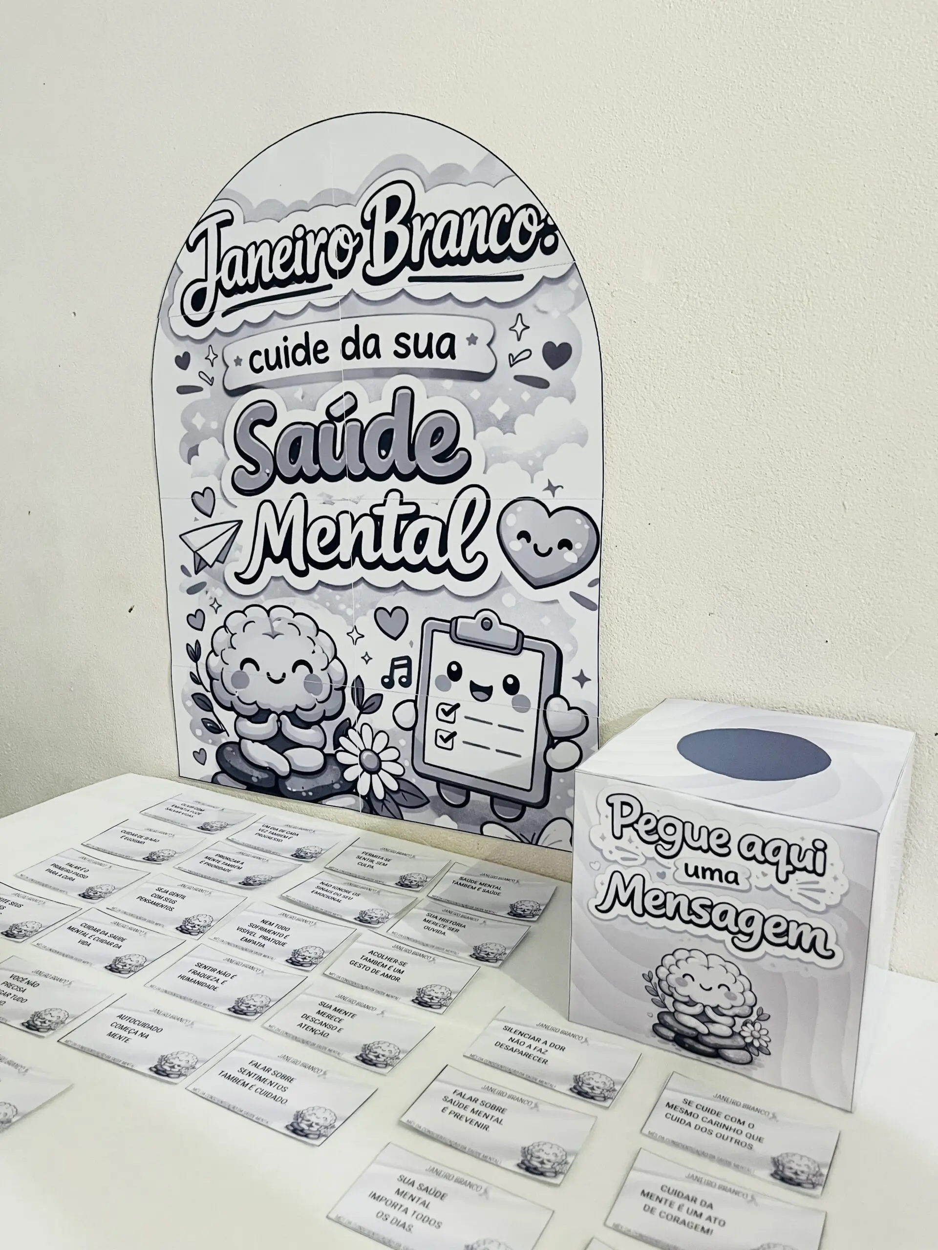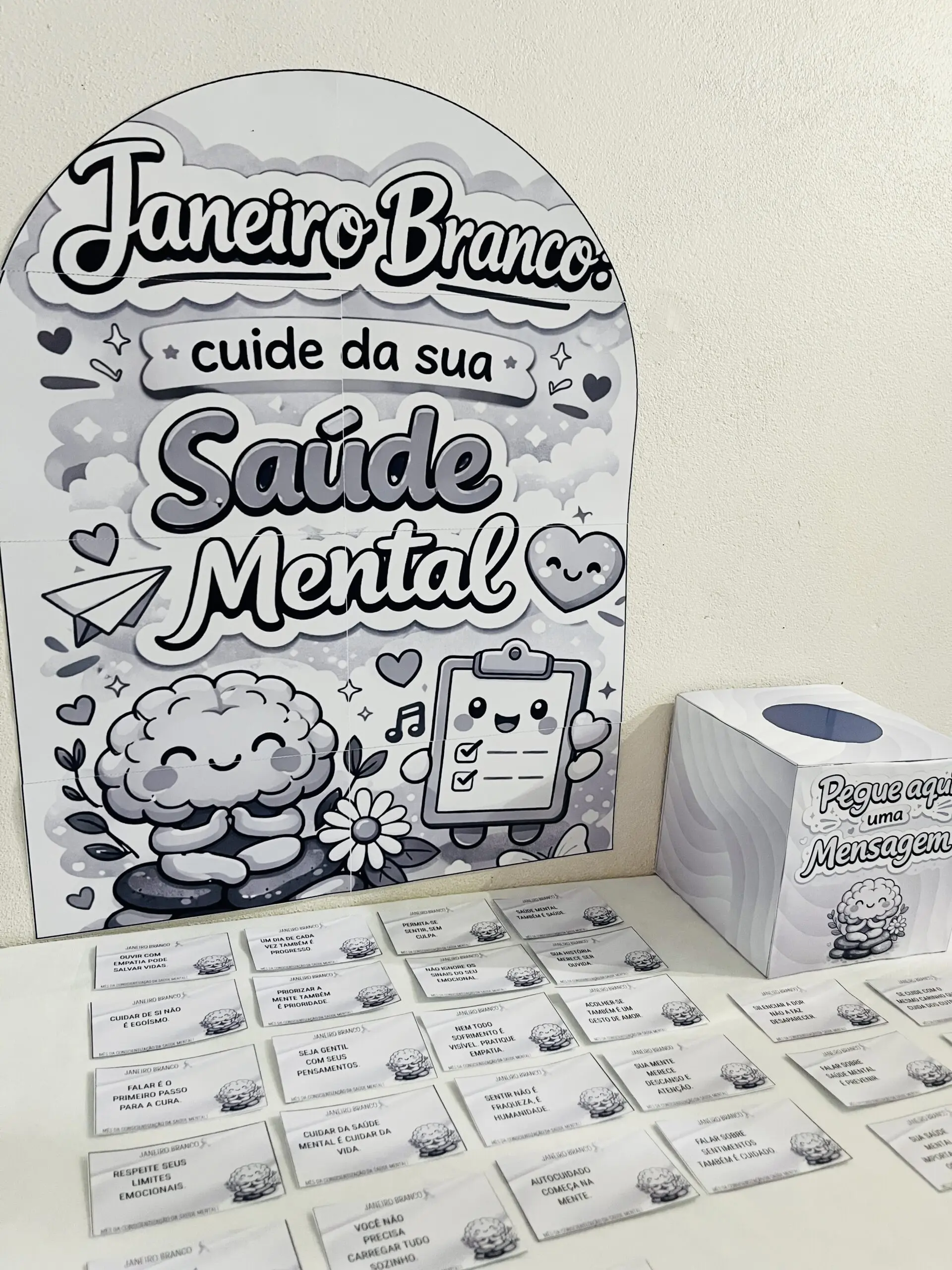 O Painel Janeiro Branco com Caixa de Mensagens Positivas é um material completo, criado para abordar a conscientização sobre a saúde mental de forma visual, sensível e impactante.